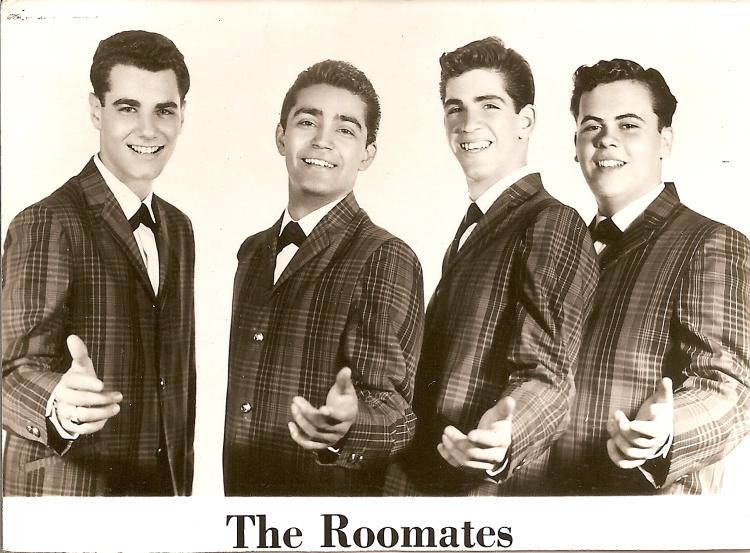 I found an old picture of the Roomates.They were a local singing group from the late 50's and early 60's.Three of the four members were from Kew Gardens. From left to right: Steve Radin, Felix ,Bob Minsky and Jack Carlson.They recorded The Glory of Love, Band Of Gold and Making Believe. Steve was not from Kew Gardens. [Photograph and comments courtesy of Roger Sabo.]