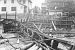 The first sepia toned image is from a 1947 newspaper article annoucing the construction of a new apartment building at 82nd Road and Queens Boulevard - the Hampton House Apartments. The black and white photograph shows workmen at the construction site taking a break. The view is looking west on Queens Boulevard from 82nd Road. The color photograph taken last year shows that same view today.