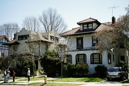 The south side of Beverly Road between Lefferts Boulevard and Brevoort Street in Kew Gardens, NY, in April of 2003.