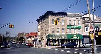 Myrtle Avenue looking west past Hillside Avenue (formerly, Park Street) in Richmond Hill, NY. Jahn's is the second store from the corner on the right.